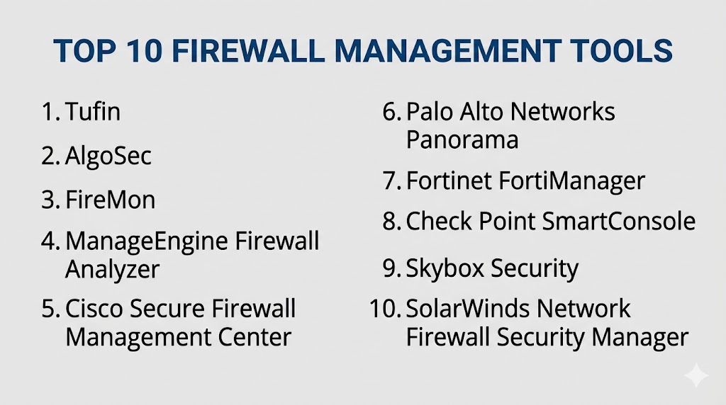 Firewall Management Tools are essential for maintaining secure, efficient, and compliant network environments in todayโs complex infrastructure landscape. As networks grow and security requirements become more demanding, manual firewall management is no longer sufficient. Enterprise-grade solutions offer automation, visibility, and scalability, while SMB-focused tools provide simplicity and cost efficiency. The right choice depends on your organizationโs size, existing infrastructure, and security priorities. Start by identifying your key requirements, shortlist a few tools, and test them in a controlled environment to ensure they align with your operational and security goals.