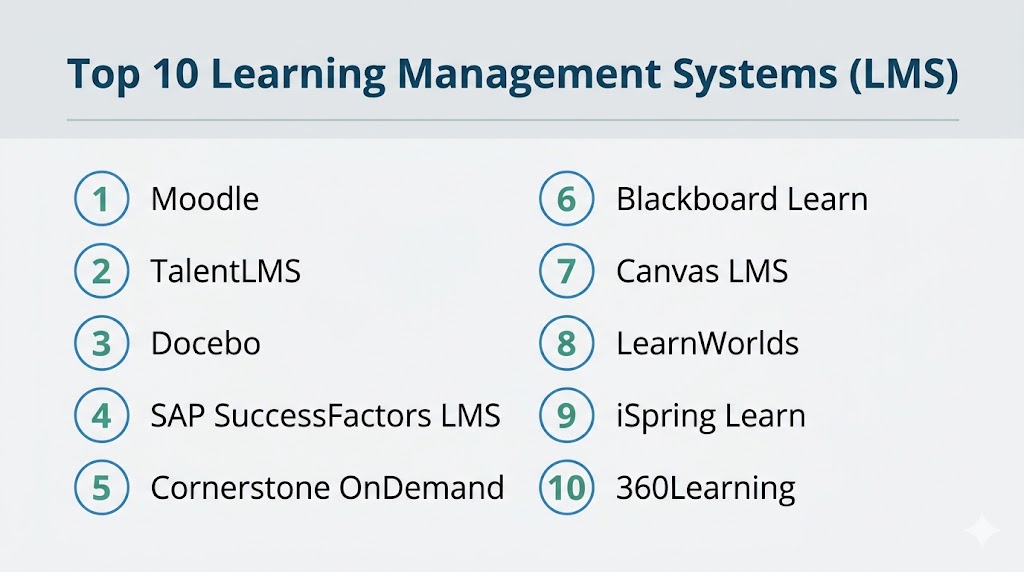 Learning Management Systems have become essential for organizations and institutions looking to deliver scalable, efficient, and engaging learning experiences. These platforms centralize training, enable real-time tracking, and support continuous skill development across teams. While tools like Moodle and TalentLMS offer flexibility and ease of use, platforms like Docebo, SAP SuccessFactors, and Cornerstone provide enterprise-grade capabilities with advanced analytics and automation. The best choice depends on your organizationโ€™s size, learning goals, and integration requirements. Instead of selecting a single solution immediately, shortlist a few LMS platforms, run pilot programs, and evaluate how effectively they support your training strategy and long-term growth.
