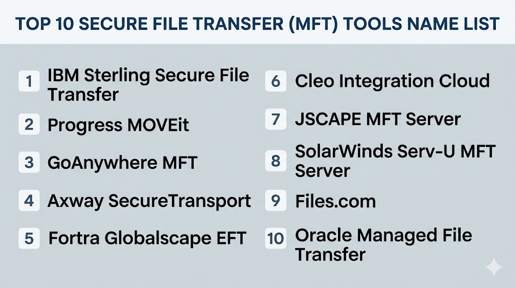 Secure File Transfer (MFT) Tools help organizations securely exchange sensitive files between employees, customers, vendors, systems, and business partners. Unlike basic FTP tools, Managed File Transfer (MFT) platforms add encryption, automation, auditing, compliance controls, workflow orchestration, and centralized governance.