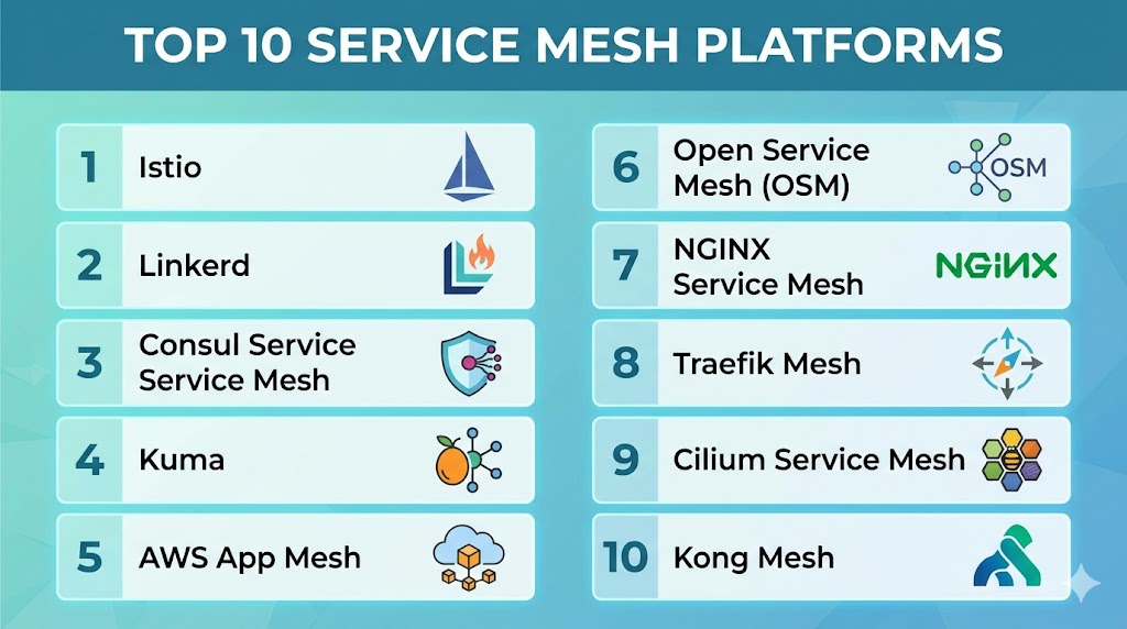 Top 10 Service Mesh Platforms: Features, Pros, Cons & Comparison