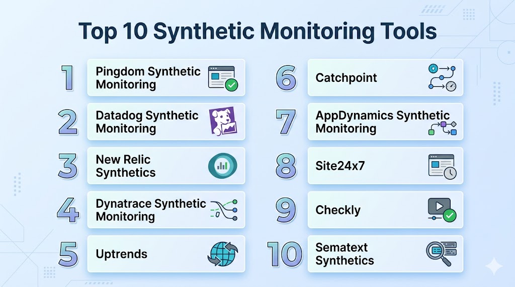 Synthetic Monitoring Tools are essential for proactively ensuring application performance and availability. By simulating real user interactions, these tools help teams identify and resolve issues before they impact users. Whether you choose enterprise platforms like Dynatrace and Catchpoint or lightweight solutions like Pingdom and Checkly, the right tool depends on your scale, budget, and monitoring needs. As applications become more complex and global, synthetic monitoring is a critical component of a strong observability strategy. Start by testing a few tools, integrating them into your workflows, and validating their effectiveness in maintaining performance and uptime.
