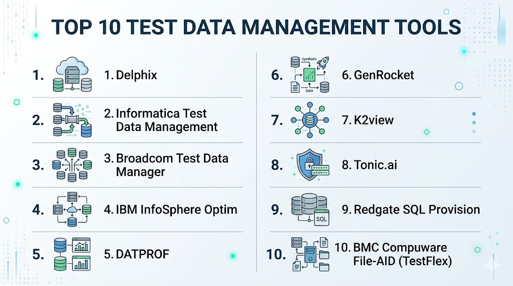 Test Data Management Tools help organizations create, mask, subset, provision, refresh, and govern test data used in software development and QA environments. Instead of relying on risky production copies or outdated spreadsheets, these platforms provide secure and controlled data for testing teams.
