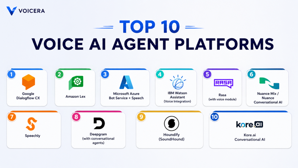 Voice AI Agent Platforms are transforming customer interactions, automation, and accessibility by enabling conversational experiences through speech. Tools like Dialogflow CX and Amazon Lex provide AI-powered, scalable solutions for SMBs and mid-market companies. Enterprise platforms like IBM Watson Assistant, Nuance Mix, and Kore.ai deliver robust voice automation, analytics, and governance. Open-source solutions like Rasa and developer-focused platforms like Speechly and Deepgram provide flexibility for custom voice applications. Selecting the right platform depends on your team’s technical expertise, deployment requirements, and desired level of AI sophistication. Implementing a voice AI agent strategically can enhance user satisfaction, reduce response times, and optimize operational efficiency, making voice-first interactions an essential component of modern digital experiences.
