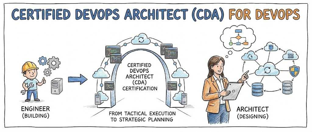 The technology world is moving faster than ever, and it does not wait for anyone to catch up. To truly stay ahead and protect your career for the long term, you must make the leap from being a “worker” who follows instructions to a “leader” who creates the instructions. The Certified DevOps Architect (CDA) is the bridge that will take you across that gap. It provides you with the skills to design the future of your company and the professional confidence to lead the most important projects in the industry.