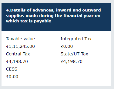 For this tutorial, we focus mainly on taxable supplies, including advances and inward supplies on which tax is payable — i.e., Table 4A (outward), advances, and inward supplies liable to reverse charge.