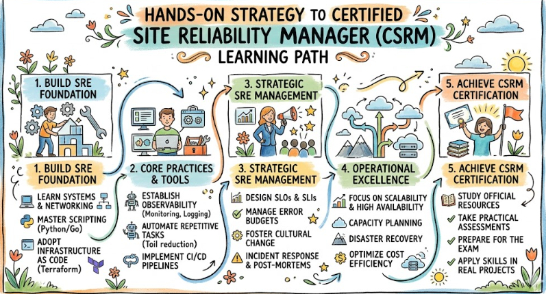 The Certified Site Reliability Manager (CSRM) is a professional designation created for those who oversee the health and performance of large-scale systems. It is not just about fixing bugs or managing servers. Instead, focus is placed on leadership, strategic planning, and the implementation of SRE principles at a management level.