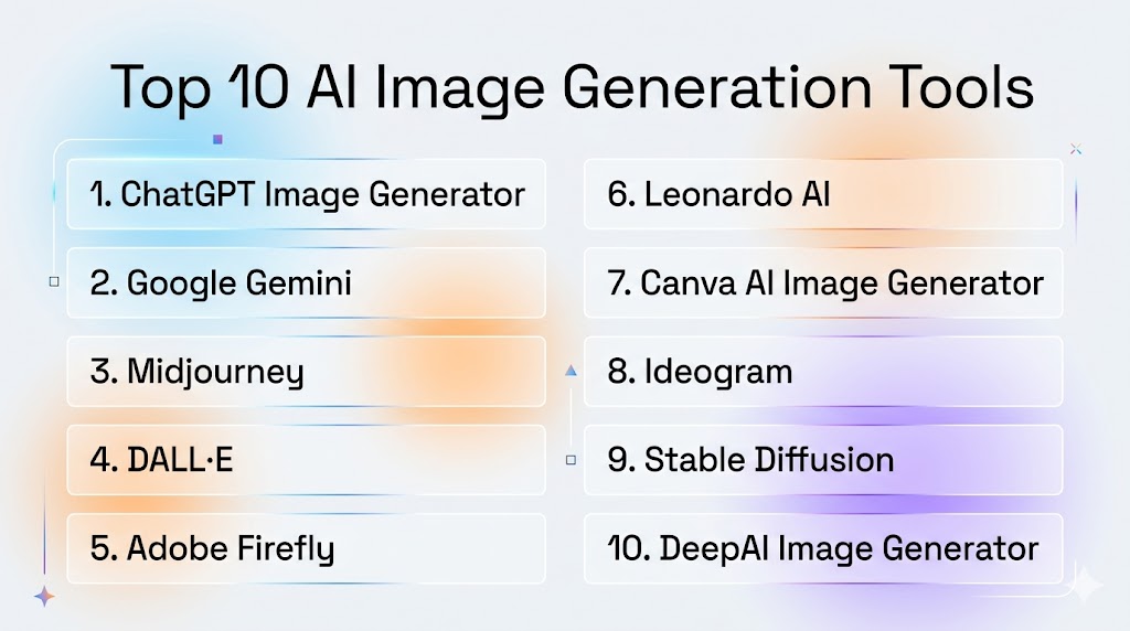 AI image generation tools are revolutionizing digital creativity by enabling users to generate high-quality visuals quickly and efficiently. Beginner-friendly tools like Canva and DeepAI make image creation accessible to everyone, while platforms like Leonardo AI and Adobe Firefly provide advanced features for creators and designers. Mid-market users benefit from tools like Ideogram and Midjourney, which offer creativity and flexibility, while enterprises can leverage powerful platforms like ChatGPT Image Generator, Gemini, and Stable Diffusion for scalability and customization. Choosing the right tool depends on your creative goals, technical expertise, and workflow requirements. A practical approach is to experiment with multiple tools, refine prompts, and combine AI-generated visuals with human creativity to achieve the best results.