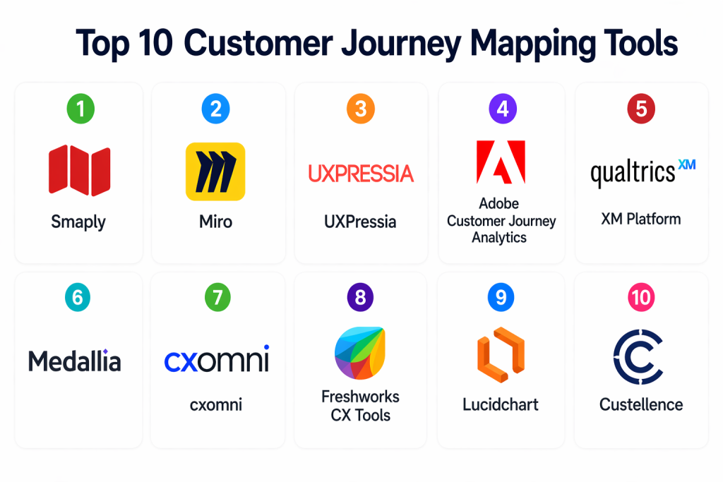 Customer Journey Mapping Tools help organizations understand how customers interact with their brand and improve every stage of the experience. SMBs benefit from tools like Miro, Lucidchart, and Freshworks for simplicity and collaboration, while enterprises rely on Adobe, Qualtrics, and cxomni for deep analytics and governance. The right tool depends on business size, CX maturity, and data complexity. Companies should start with clear mapping goals, test usability, and ensure integration with existing systems before selecting a platform.