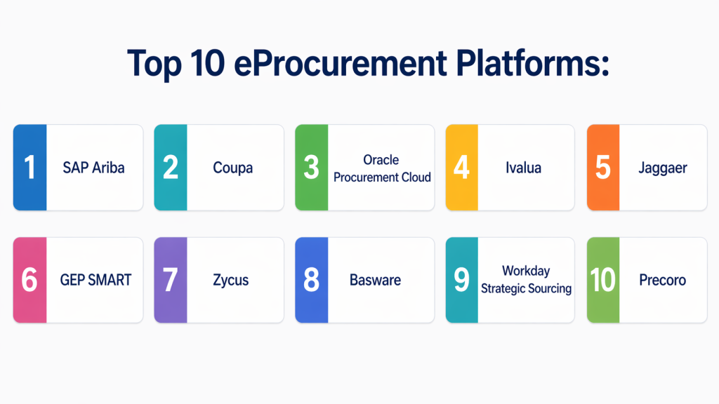 SAP Ariba, Coupa, Oracle, Jaggaer, Ivalua are best for complex needs.