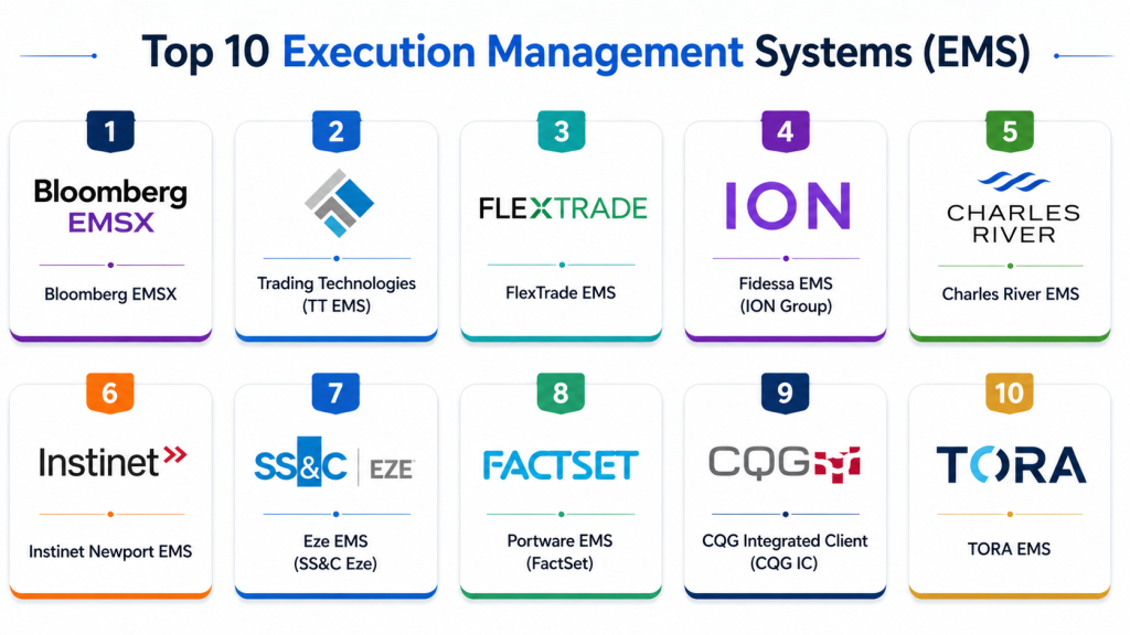 Execution Management Systems are essential for efficient and optimized trade execution in modern markets. They provide real-time connectivity, smart routing, and analytics for institutional trading desks. Enterprise solutions like Bloomberg EMSX, TT EMS, and Fidessa offer global, low-latency execution capabilities. Mid-market platforms such as Eze EMS and Portware provide balanced features and usability. The right EMS depends on trading volume, latency requirements, and integration needs. Organizations should evaluate performance, analytics, and compliance features carefully. Pilot implementations can validate execution quality and ROI. Ultimately, the best EMS aligns with trading strategy and operational efficiency goals.