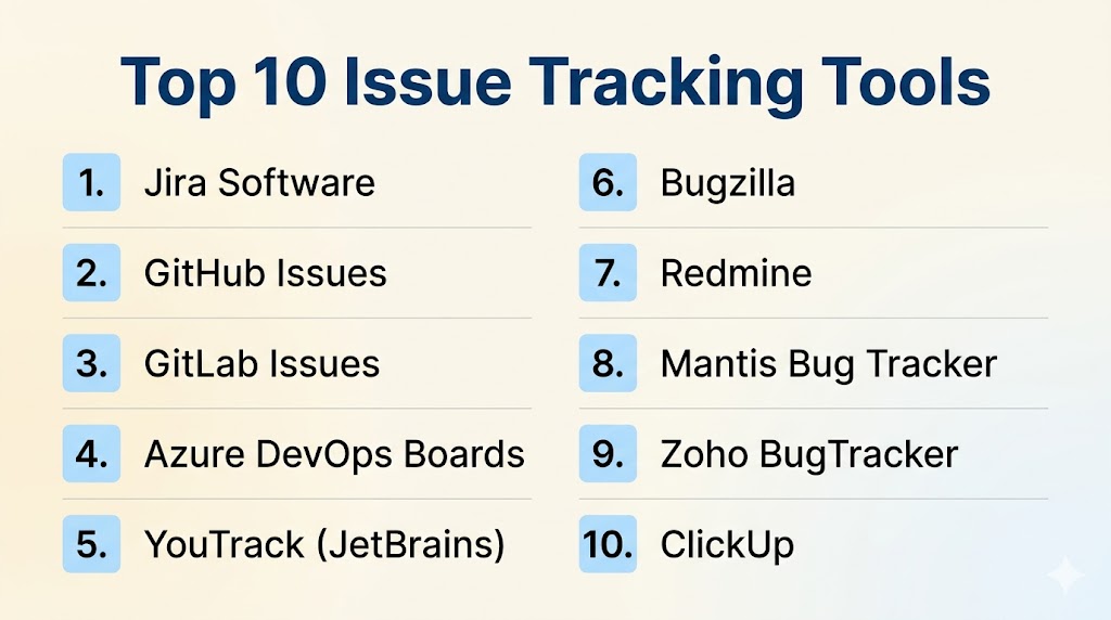 Issue Tracking Tools are essential for modern software development teams to manage bugs, tasks, and workflows efficiently. Open-source tools like Bugzilla and Redmine offer flexibility, while platforms like Jira, GitHub Issues, and Azure DevOps provide powerful enterprise-grade capabilities. The right tool depends on team size, workflow complexity, and integration needs. Organizations should focus on scalability, automation, and DevOps integration when selecting a tool.