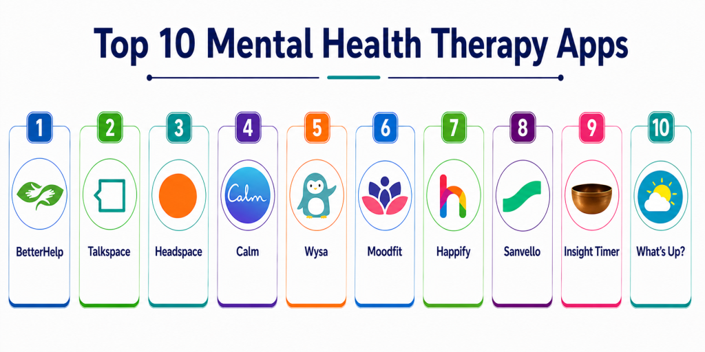 Mental Health Therapy Apps have transformed how individuals access and manage mental health care. By combining therapy, mindfulness, AI-driven support, and real-time communication, these tools provide flexible and scalable solutions for modern mental wellness challenges. Platforms like BetterHelp and Talkspace deliver professional therapy access, while apps like Headspace and Calm focus on mindfulness and stress reduction, and tools like Wysa bring AI-driven support into everyday life. There is no single “best” app for everyone. The right choice depends on whether you need professional therapy, self-guided support, or daily wellness tools. The most effective approach is to shortlist a few apps, try them for a few weeks, and evaluate how well they fit your routine, comfort level, and goals. A thoughtful selection can significantly improve mental well-being, consistency, and long-term emotional health.