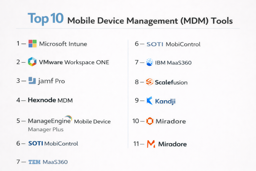 Mobile Device Management (MDM) tools help organizations secure, configure, monitor, and manage smartphones, tablets, and mobile endpoints from a centralized console. These platforms are designed to give IT teams control over company-owned devices, BYOD programs, remote teams, and mobile applications while protecting business data.
