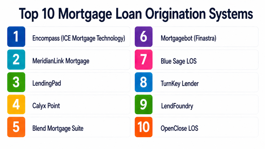 Mortgage Loan Origination Systems are essential for modern lending operations. They help streamline workflows, improve compliance, and enhance borrower experience. Enterprise platforms like Encompass and Mortgagebot offer deep functionality for large lenders. Meanwhile, tools like LendingPad, Blend, and OpenClose provide flexible solutions for growing organizations. The right LOS depends on business size, loan complexity, and digital maturity. Organizations should evaluate automation, integrations, and scalability before making a decision. Running a pilot can help validate workflows and usability. Ultimately, the best system is one that aligns with your lending strategy and operational goals.