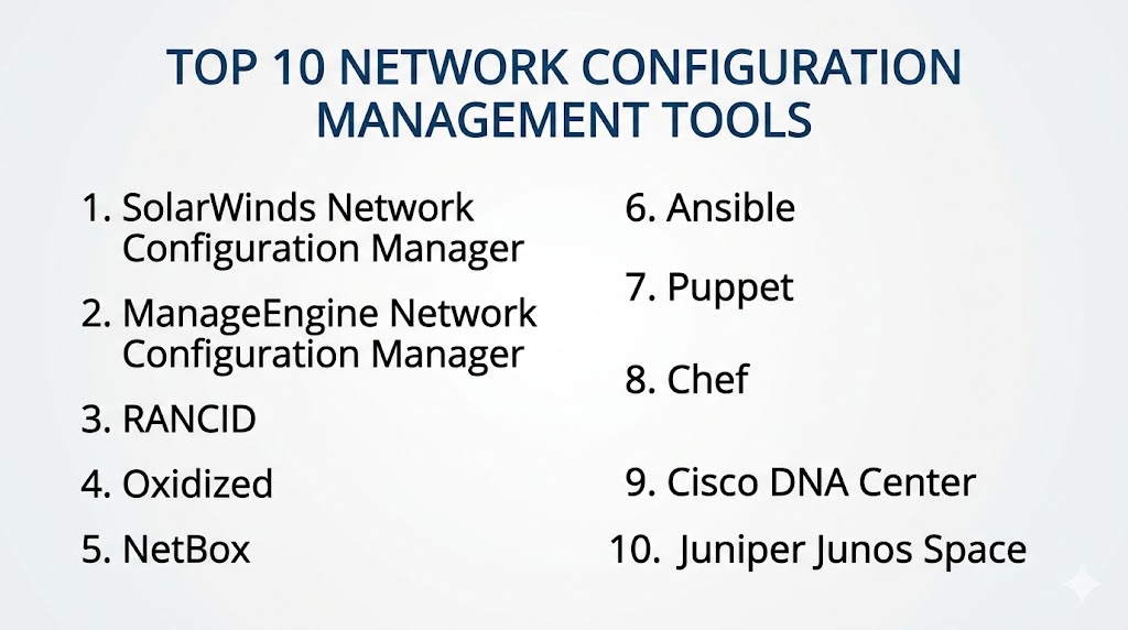 Top 10 Network Configuration Management Tools: Features, Pros, Cons & Comparison