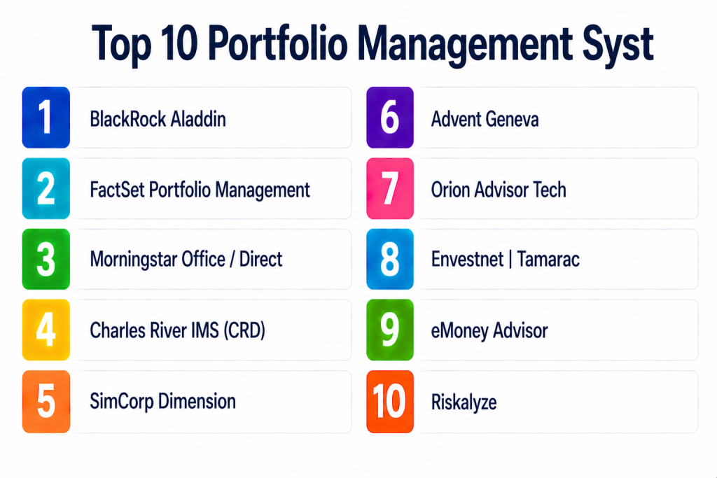 Portfolio Management Systems are specialized software platforms that allow asset managers, financial advisors, wealth managers, and institutional investors to monitor, analyze, and optimize investment portfolios. These tools provide insights into risk, performance, allocation, and compliance, enabling data-driven investment decisions.