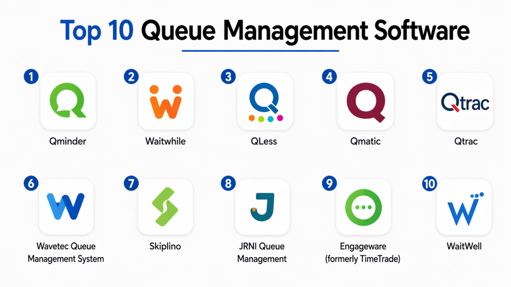 Qminder, Waitwhile, QLess, and Qmatic are among the most widely used depending on business size and industry needs.