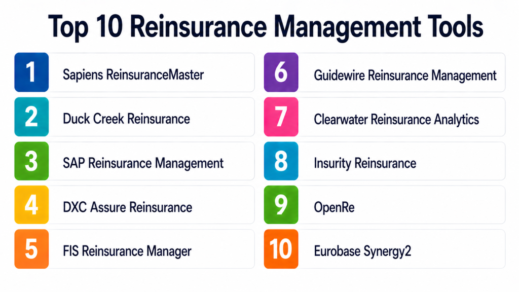Reinsurance management tools are essential for insurers to manage risk transfer efficiently and accurately. They help automate complex processes, improve financial transparency, and reduce operational risk. Enterprise platforms like Sapiens, SAP, and DXC provide deep functionality for large insurers. Meanwhile, tools like OpenRe and Insurity offer flexible solutions for smaller organizations.