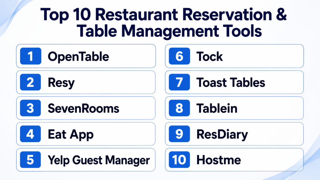 Restaurant reservation and table management platforms are essential for modern hospitality businesses aiming to optimize operations and deliver exceptional guest experiences. From simple tools like Tablein to advanced systems like OpenTable and SevenRooms, the right platform depends on your restaurant size, complexity, and growth goals. Small restaurants can benefit from easy-to-use solutions, while larger operations should invest in platforms with strong analytics, integrations, and CRM capabilities. The best approach is to shortlist a few tools, test them in real scenarios, and choose one that aligns with your workflow, improves table utilization, and enhances customer satisfaction.