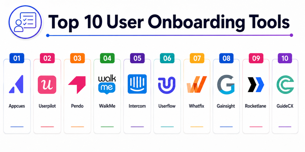 User Onboarding Tools are essential for delivering strong first impressions and ensuring users quickly understand the value of a product. Platforms like Appcues and Userpilot excel in no-code onboarding and personalization, while tools like Pendo and Whatfix provide deep analytics and enterprise scalability. Solutions such as WalkMe and Gainsight are ideal for complex onboarding workflows, especially in large organizations. Meanwhile, tools like Userflow and Intercom offer flexibility and ease of use for growing teams. The right choice depends on your onboarding complexity, team size, and product strategy. Smaller teams benefit from simple and fast solutions, while enterprises require advanced automation and governance. Since onboarding is critical to long-term retention, selecting the right tool can significantly impact product success. Start by identifying your onboarding goals, shortlist a few tools, and test them in real scenarios before scaling.