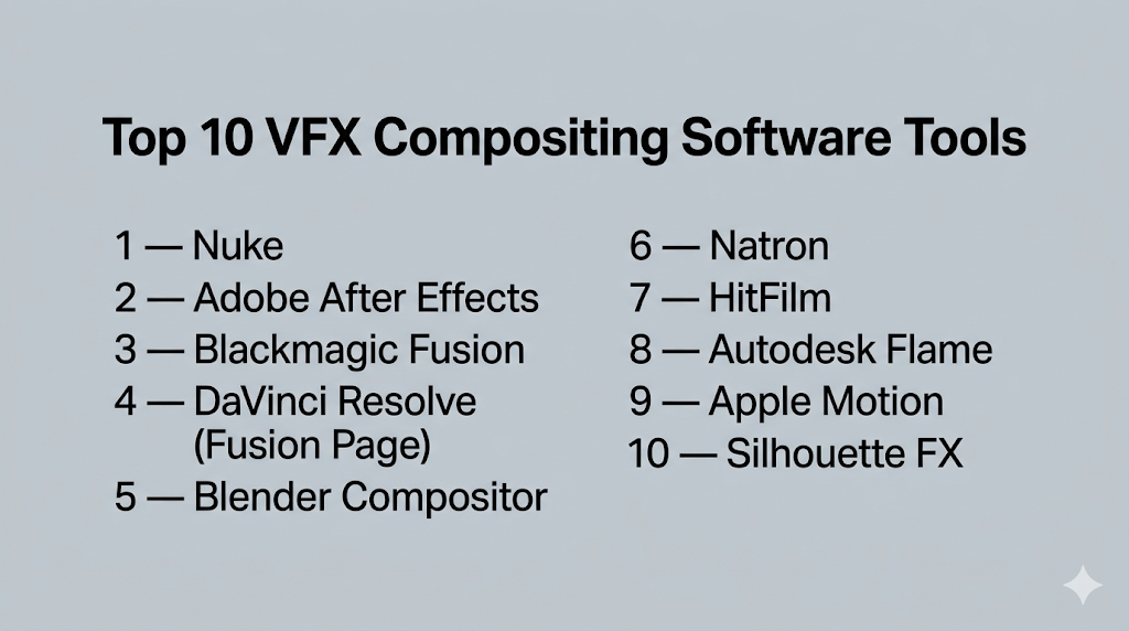 These tools enable artists to create realistic illusions by layering visuals, applying effects, and ensuring lighting, color, and motion match seamlessly across elements. Modern compositing tools now include node-based workflows, real-time previews, AI-assisted masking, and deep integration with production pipelines.